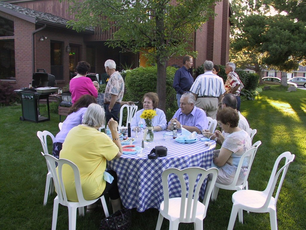 A BY High reunion for the Class of 1960 was held Sunday night, July 3, 2005, at the home of Newt and Kris Andrus in Orem. It was a great success! Steve Worsley did a bang-up job of preparing the meal, and displayed it beautifully with lots of antiques layered high as a centerpiece on the buffet table.
