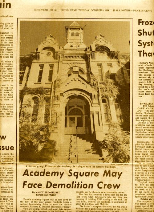 Provo Votes to Save BY Academy as Library ~ 1997
