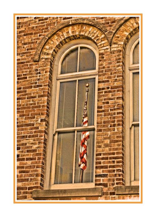 Flag Reflected in Academy Window