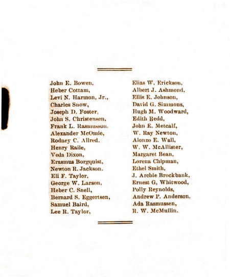 The above page says "Brigham Young University" when in fact all of the names on the following two pages are Brigham Young University High School graduates.